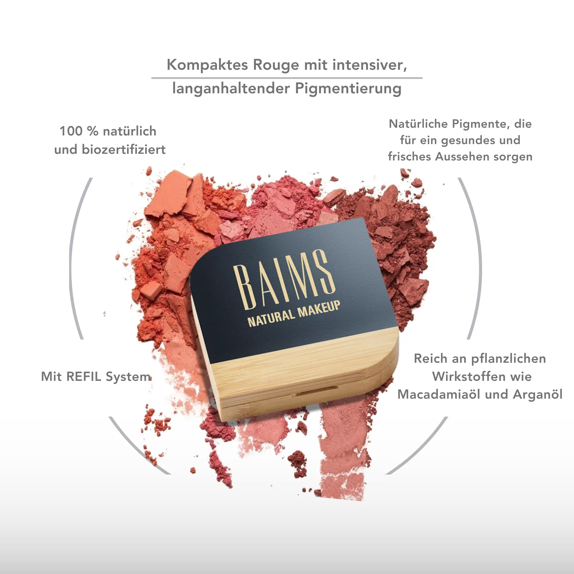 Unser Bronzer & Contour hat einen sehr natürlichen, schimmerfreien Terrakotta-Ton, der zu jedem Hautton passt. Wähle eine unserer 3 wunderschönen Rougetöne.